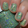 Honeydew Milk Tea *Reimagined* is a honeydew crelly base full of rainbow shifting glass flakes, and black flakes.