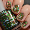 'Saguaro Sunset' a black jelly base with glowy green/orange/yellow/red shifting flakes.